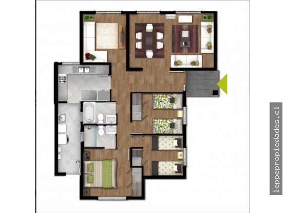 3 dormitorios con closet. 2 baños, con el principal en suite.